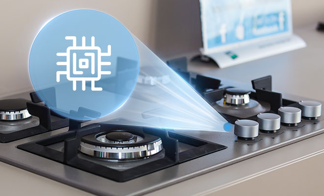 This solution implements range hood interconnection through an advanced intelligent control system, offering great convenience and practicality. When the user starts cooking, the integrated stove automatically adjusts the range hood's operation to effectively extract cooking fumes, thereby enhancing the overall kitchen experience.