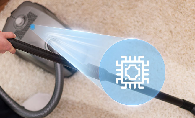 Incorporates a built-in dust detection microsystem that automatically adjusts the speed and suction of the motor based on the amount of dust detected, maintaining cleaning efficiency while saving energy.
