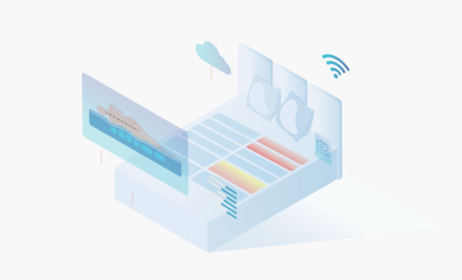 Equipped with networking capabilities, it computes and analyzes sleep data through a cloud platform.